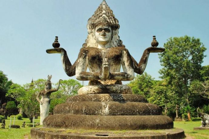 坐落在首都萬(wàn)象東南部湄公河畔上的香昆寺(又叫佛像公園),如其名,公園里到處都是千姿百態(tài)的佛像和雕塑,是一個(gè)怪人荒誕野心的紀(jì)念物。它的創(chuàng)建者創(chuàng)建者班勒威·蘇里拉是一名泰國(guó)僧侶,他將印度教和佛教的哲學(xué)思想、傳說(shuō)和肖像學(xué)融會(huì)貫通,組合成一個(gè)神秘的整體。