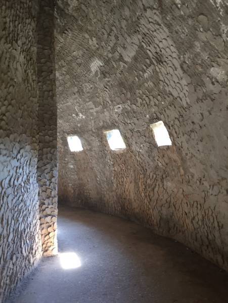 塔分三層,從低到高分別代表地獄、人間和天堂地獄的雕像多以惡鬼骷髏為主,沿著“天堂地獄塔”張開的嘴巴進(jìn)入,拾階而上,沿著一層環(huán)繞的塔邊,塔心設(shè)計(jì)為用水泥澆筑的各種地獄景象,光線從塔壁蜿蜒進(jìn)去,微弱的光打在面目可怖的鬼怪雕塑上,讓人心生敬畏。