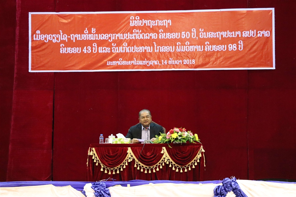 2018年12月14日,老撾國(guó)立大學(xué)組織師生收聽“建立會(huì)曬市老撾革命根據(jù)地50周年”,“老撾人民民主共和國(guó)成立43周年”和“主席誕辰98周年”等重要講話。