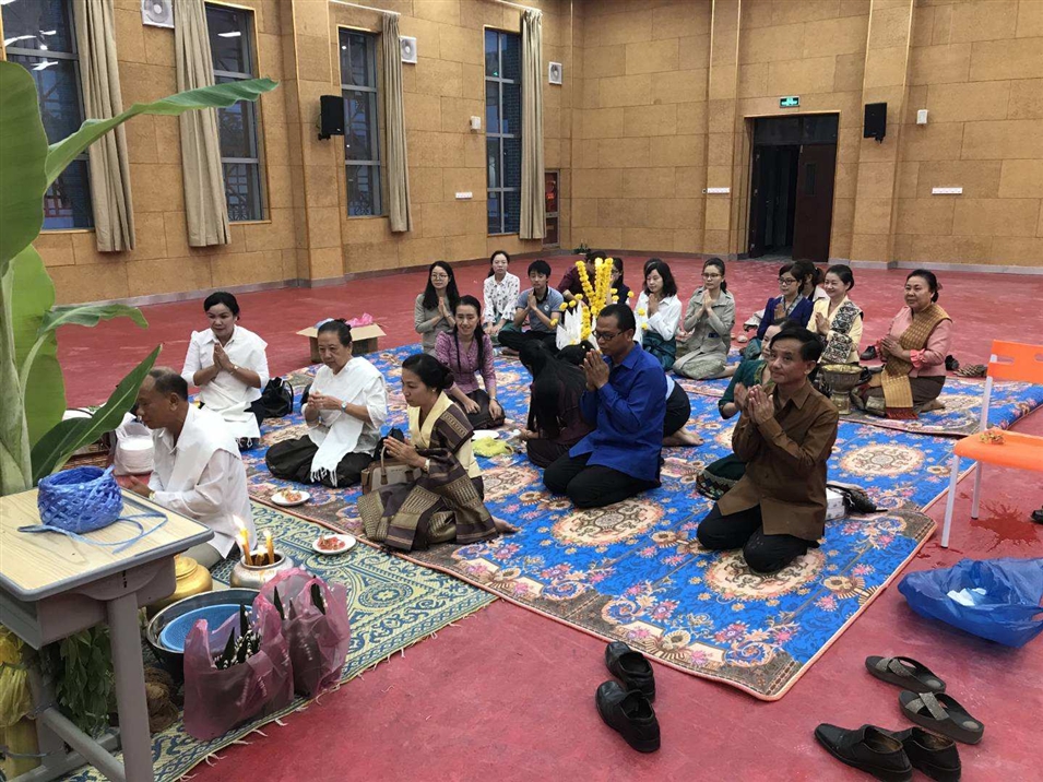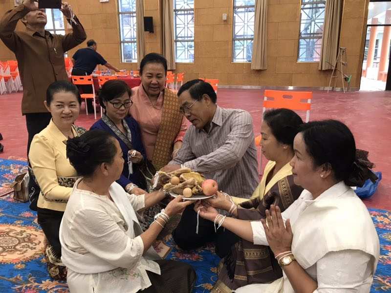2019513號凌晨五點,老撾國立大學孔子學院新樓成功舉辦栓線祝福儀式,老撾國立大學校長宋西.諾潘塞、副校長宏頻.占塔翁、辦公室主任瑪妮淑和老撾國立大學孔子學院老方院長阮瑋蕾.賽雅勒、中方院長李肖以及中國志愿者老師等參加此次活動。