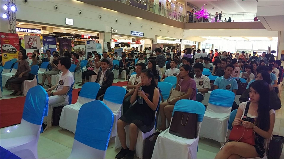 20日中午,萬象中心大廳坐滿了人,現(xiàn)場布置以藍白為主,看起來整潔典雅。主持人的開場白點燃現(xiàn)場觀眾的熱情,比賽正式拉開帷幕。